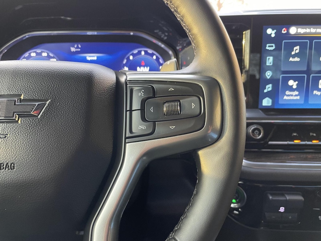 EMISSIONS, FEDERAL REQUIREMENTS, ENGINE, DURAMAX 3.0L TURBO-DIESEL I6, TRANSMISSION, 10-SPEED AUTOMATIC, GVWR, 7200 LBS. (3266 KG), REAR AXLE, 3.23 RATIO, WHEELS, 20 X 9 (50.8 CM X 22.9 CM) HIGH GLOSS BLACK PAINTED ALUMINUM, TIRES, 275/60R20SL ALL-TERRAIN, BLACKWALL, TIRE, SPARE 255/80R17SL ALL-SEASON, BLACKWALL, STERLING GRAY METALLIC, SEATS, FRONT BUCKET, JET BLACK, LEATHER-APPOINTED FRONT OUTBOARD SEATING POSITIONS, AUDIO SYSTEM, CHEVROLET INFOTAINMENT 3 PREMIUM SYSTEM, LT TRAIL BOSS PREMIUM PACKAGE, CONVENIENCE PACKAGE II, SAFETY PACKAGE, LEATHER PACKAGE, PROTECTION PACKAGE, ENGINE BLOCK HEATER, SHIFTER, ELECTRONIC TRANSMISSION RANGE SELECTOR, EXHAUST, DUAL WITH POLISHED OUTLETS, CHEVYTEC SPRAY-ON BEDLINER, BLACK, WHEELHOUSE LINERS, REAR, LIGHTING, PERIMETER, LICENSE PLATE KIT, FRONT, TAILGATE, GATE FUNCTION POWER UP/DOWN, BOSE SOUND SYSTEM, PREMIUM 7-SPEAKER SYSTEM, SEAT, UP-LEVEL REAR WITH STORAGE PACKAGE, CENTER CONSOLE, FLOOR-MOUNTED, WINDOW, POWER, REAR SLIDING, UNIVERSAL HOME REMOTE, WIRELESS CHARGING, USB PORTS, 2, CHARGE/DATA PORTS LOCATED INSIDE CENTER CONSOLE, REAR CROSS TRAFFIC BRAKING, FRONT AND REAR PARK ASSIST, ULTRASONIC, HD SURROUND VISION, TRAILER CAMERA PROVISIONS, HITCH GUIDANCE WITH HITCH VIEW, IN-VEHICLE TRAILERING APP, SYSTEM, TRAILER SIDE BLIND ZONE ALERT, REAR PEDESTRIAN ALERT