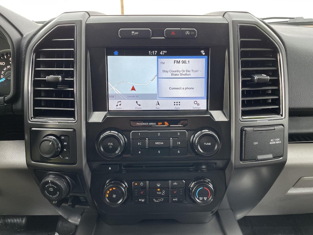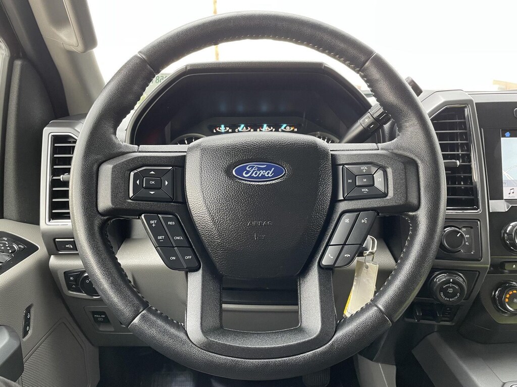 - Includes vehicle with standard equipment, fixed backlight with privacy glass and defroster, 10-way power driver and passenger seats with power lumbar adjustment, heated front seats, 4.2 inch productivity screen in instrument cluster, auto-dimming rearview mirror, leather-wrapped steering wheel, reverse sensing system, power-adjustable pedals, rear under seat storage, manual folding, power glass side view mirrors with heat, turn signals, and black skull caps, Class IV trailer hitch with Smart Trailer Tow Connector and 4-pin/7-pin wiring, remote start system, SiriusXM Satellite Radio with 7 speakers, SYNC 3 enhanced voice-activated in-vehicle connectivity system including 8 inch center stack touch screen with swiping and pinch-to-zoom capabilities, compass, clock, 911 assist, AppLink, Apple CarPlay, Android Auto, and two USB charging ports, one 110V/400W outlet in instrument panel (two with console seats), and XLT Chrome Appearance Package including 18 inch chrome-like PVD wheels, 275/65R18 OWL all-terrain tires, chrome billet style grille with chrome surround and black mesh insert, chrome door handles with black strap, chrome front tow hooks, chrome single-tip exhaust, and chrome step bars. SiriusXM U.S. Satellite Service is available in the 48 contiguous United States and D.C.