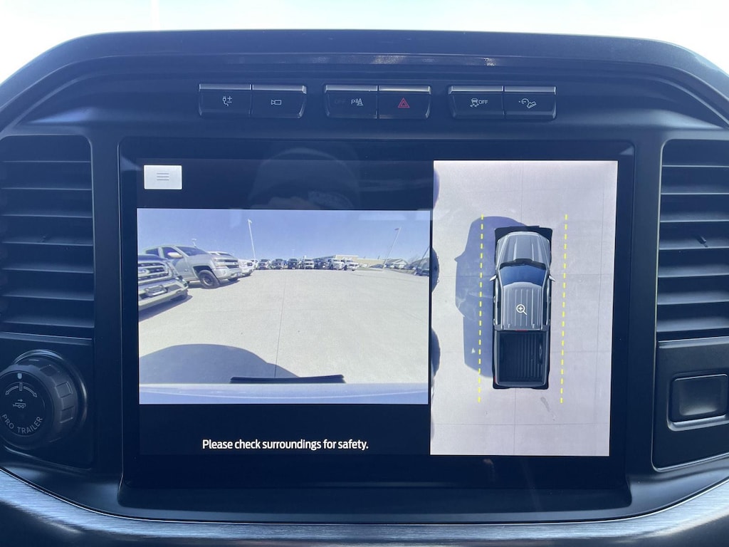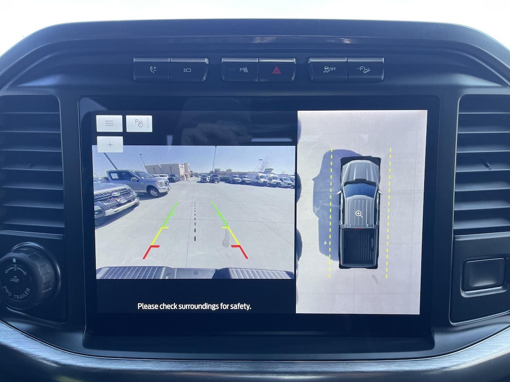 - The vehicle is equipped with a camera that displays an image of the area behind the vehicle on an interior display.